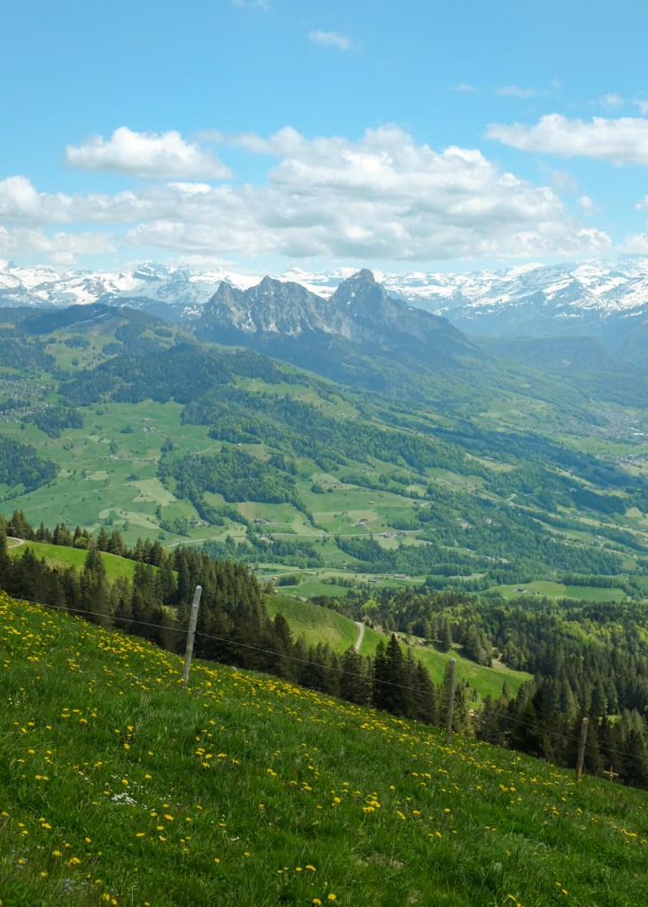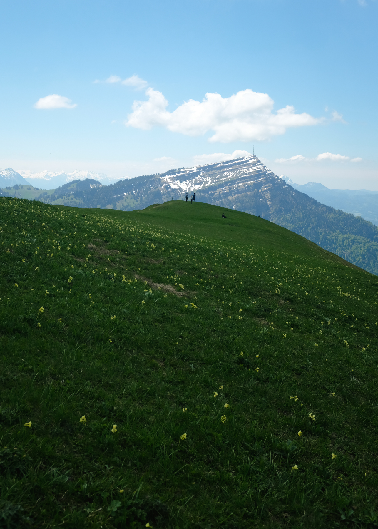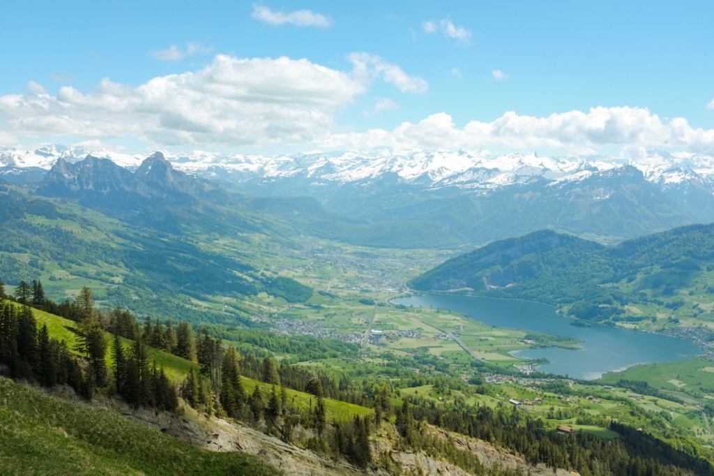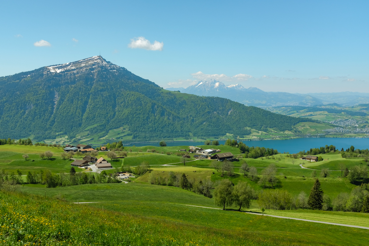 The ascent to Wildspitz feels more like a walk than a hike. Nevertheless, due to snow, the period from May to October is the best time to visit. One of the most popular variants of the trek is the six-hour, ten-mile route starting in Zug and ending in Sattel, a village in the neighboring canton of Schwyz. The trail begins from the railway station atop the Zugerberg—Zug’s home mountain—where a relatively flat path hugging the ridge gradually winds southwards through the elevated pastures of serene Walchwil. All the while, magnificent vistas of the volcano-like Mount Rigi and trident-shaped Mount Pilatus keep a constant company. The top of the Wildspitz marks the cantonal line between Zug and Schwyz, and the descent down to Sattel trades views of the Rigi and Pilatus for an equally stunning panorama of Lake Lauerz and the twin peaks of Schwyz—the Grosser and Kleiner Mythen.