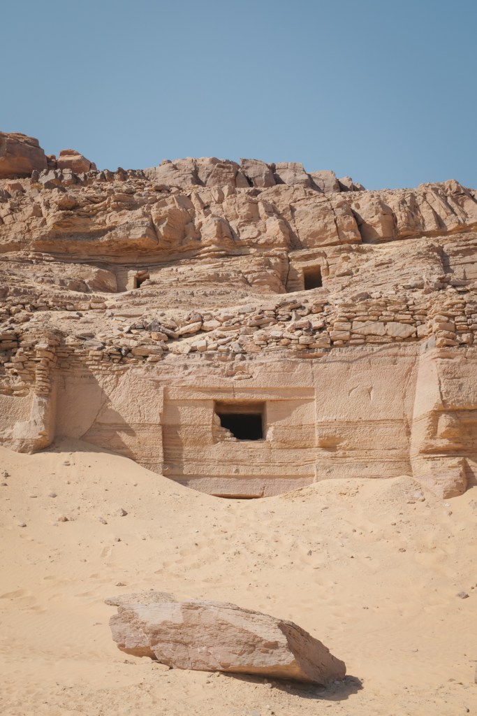 Across the river, on the west bank, are clusters of mud-and-silt constructions adorned with colorful geometric patterns and rounded domes. They offer a first glimpse into Nubian architecture. Historically, Aswan marked the border between Ancient Egypt and its southern neighbor, Nubia, though there was steady exchange between the two cultures. For roughly a century, from 754 to 656 BC, Nubian Pharaohs ruled over both Upper and Lower Egypt.