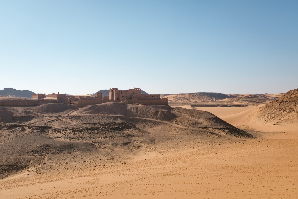 Egypt’s diversity extends beyond its Bedouin and Nubian minorities. Roughly ten percent of the population is Coptic. Like other Egyptians, Copts trace their descent to the ancient inhabitants of the land, but distinguish themselves through their adherence to the Coptic Orthodox Church. They are the country’s largest Christian community. The 7th-century Monastery of St. Simeon is one of the region’s best-preserved Coptic complexes. It lies on the west bank of the Nile, beyond a tall and sandy hill. Reaching it requires a trek through the desert past the necropolis of Qubbet el-Hawa—the Dome of the Wind—which overlooks all of Aswan.